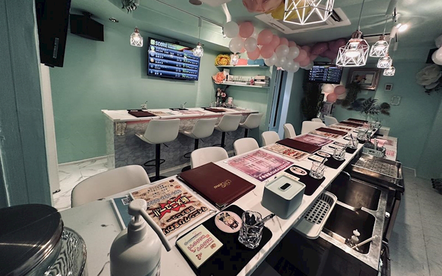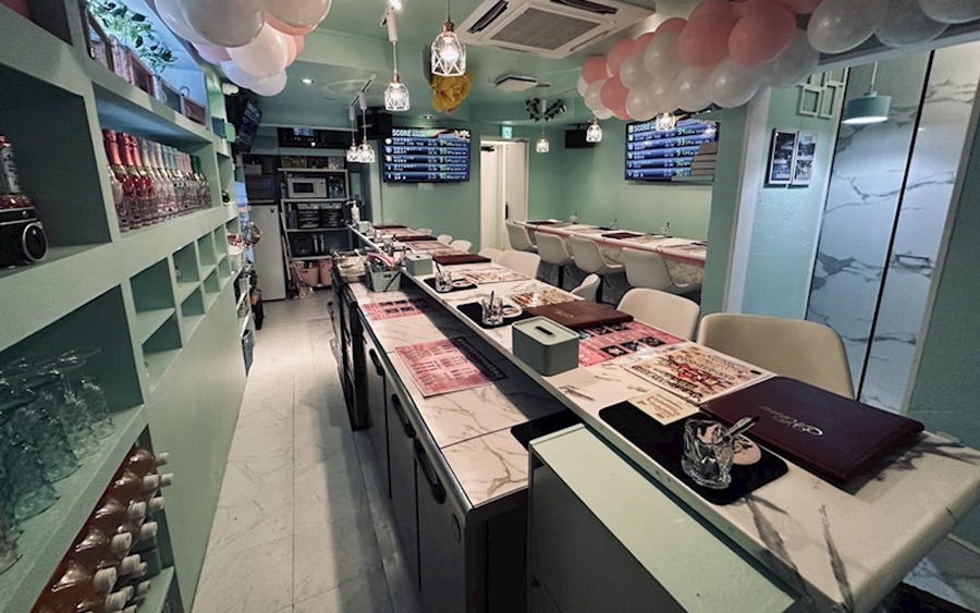 白を基調とした清潔感あふれる店内には、カラフルなバルーンやおしゃれなお酒のボトルがインテリアとして飾られ、